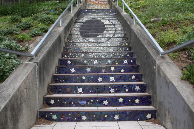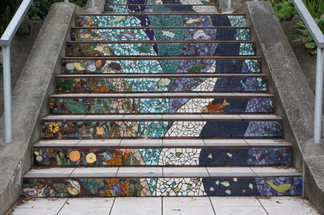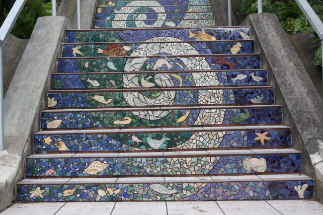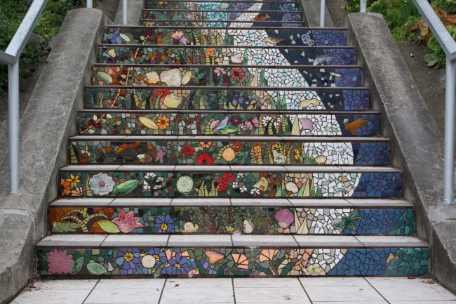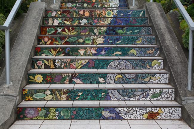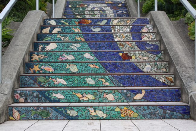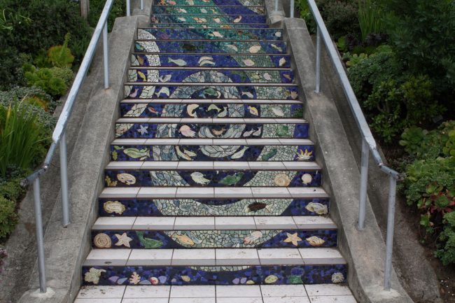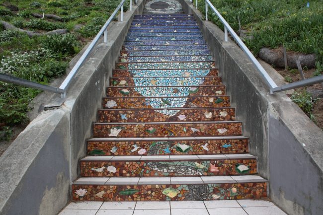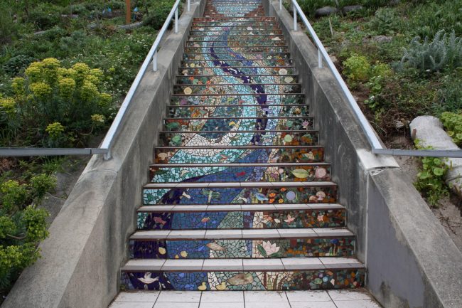 This stairway is truly a work of art. It’s located in the Golden Gate Heights neighborhood of San Francisco. These 163 steps climb up from the intersection of Moraga Street and 16th Avenue and end at 15th Avenue. The colors and patterns in the mosaic tiles on the risers of the stairs are amazing. The residents and volunteers that created and maintain the steps also have a website about the steps.