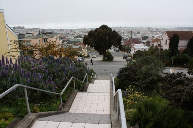 If you want to go higher from the top of the 16th Ave Tiles Steps, watch for cars and go right on 15th a few paces to another stairway which ascends to the upper street level (streets are confusing in this area). Then you should see a final set of steps and landings that leads to the top of Grandview Park where the views are outstanding.