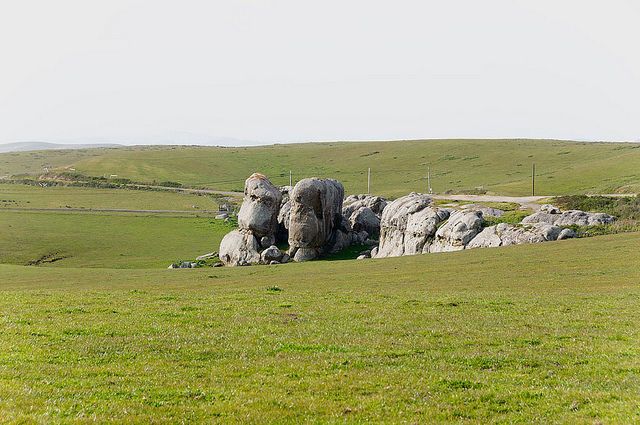 The Elephant Rocks are located about three miles down the Dillon Beach Road from Tomales. They are hard to miss even though the bulk of the rocks is below the road. A flat gravel parking lot is next to the rocks.