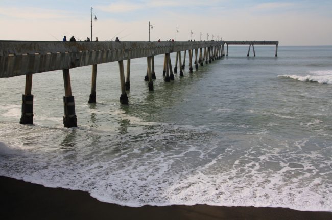 Pacifica Municipal Fishing Pier is an old concrete pier located on the waterfront in the Sharp Park neighborhood of Pacifica CA. The beach next to the pier, Sharp Park Beach is eroding badly so there is no sand exposed at high tide. Fishing from the pier is free and does not require a fishing license so it’s a popular with local fisherman. There is a small cafe at the entrance to the pier, and since this is a non-touristy area, this pier has a very local atmosphere.