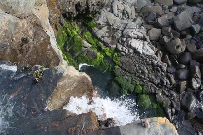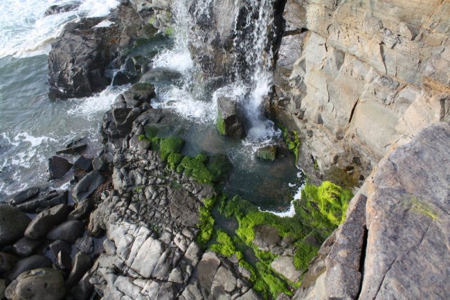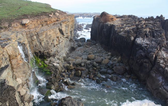 Phillips Creek flows down through Kruse Rhododendron State Reserve, crosses under Highway 1, and makes its way down a narrow gulch to the ocean. It’s just one of a few waterfalls that fall on beaches in California.