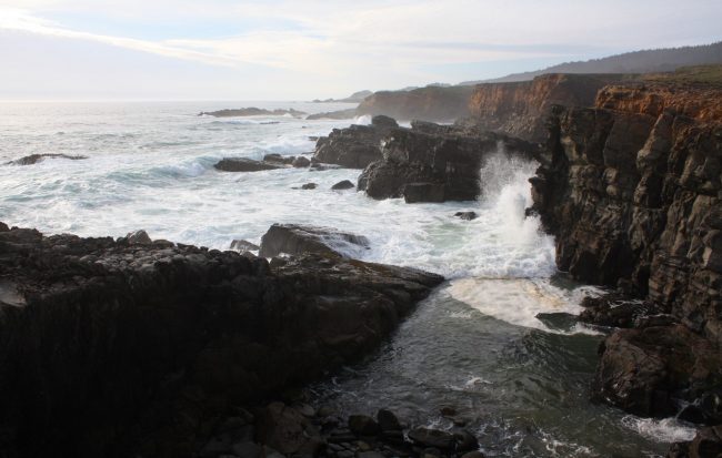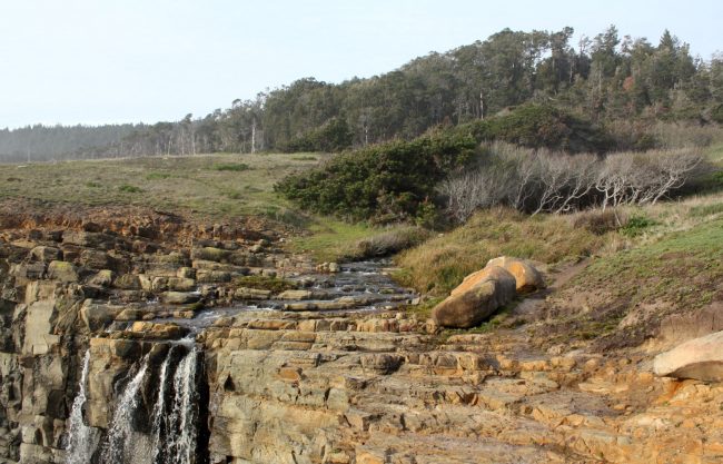 A seasonal waterfall pours over a rocky cliff in a hidden part of Salt Point State Park in Sonoma County. If you happen to visit this area in winter or spring or after a period of rain, there will be a gorgeous waterfall nearby one of the best beaches in the park.
