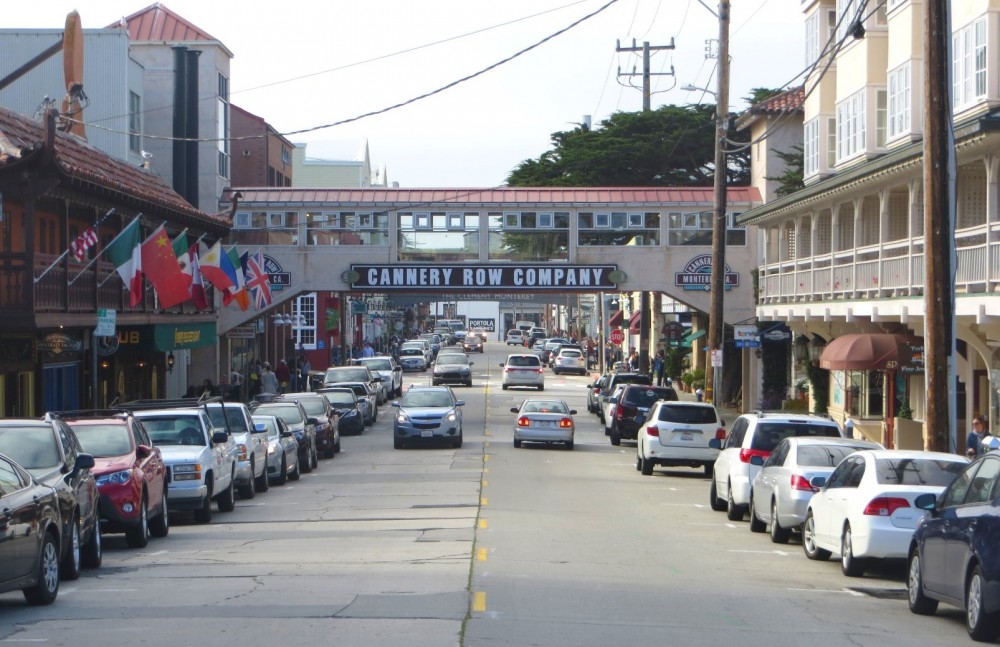 On Cannery Row in the daytime you can view people walking between the Monterey Plaza Hotel and the Cannery...