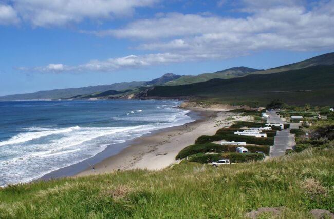 Jalama Beach is the perfect destination for coastal camping and glamping in Central California. It’s a long drive down to this spot so you might as well stay for a while. This facility is run by Santa Barbara County Parks and they do a great job providing a place that is hard to leave. There is a large campground and seven cabins available for rent.