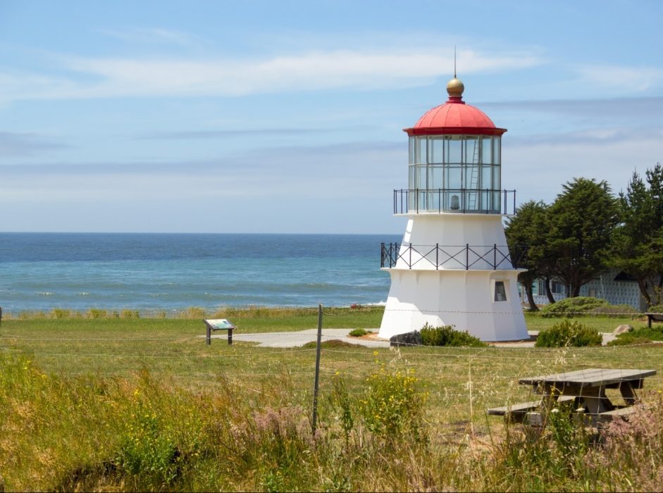 Part of California’s famed “Lost Coast”, the town of Shelter Cove is a remote location, and mostly free of development. Just north of town, you’ll find the King Range National Conservation Area, with its secluded beaches accessible by walking the shoreline or the Lost Coast Trail. From the unusual black sand and offshore reefs of Shelter Cove Beach, to those of the appropriately named Black Sands Beach, this community shelters a diverse and natural environment. The relocated Cape Mendocino Lighthouse at Mal Coombs Park stands as a beacon to the region’s former maritime history. All of the beaches and businesses in Shelter Cove have a Whitethorn address but this town is only Shelter Cove to locals.