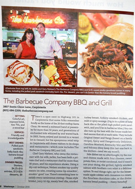 The Barbecue Company in Carpinteria, California is in the restaurants, bars, and cafes category. The map below will show you where The Barbecue Company is located and also provide driving directions. For reservations, directions, or questions you can contact them at (805) 684-2209 or on their website. Below is a list of the nearest beaches to The Barbecue Company and other nearby attractions.