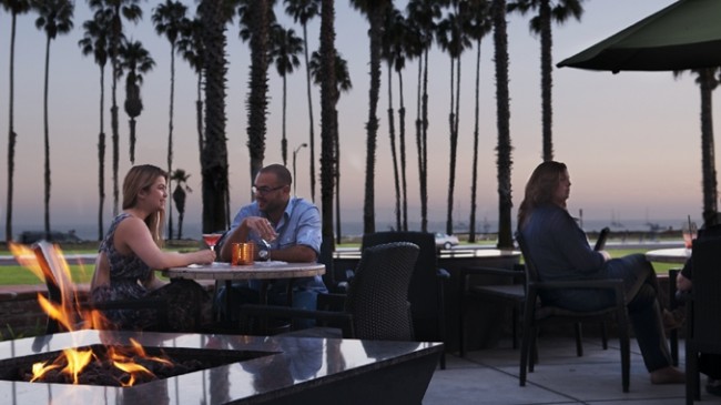 Standing on the beach in Santa Barbara, you can look across Cabrillo Street to see The Fess Parker Doubletree...